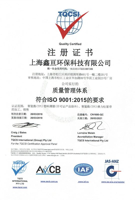鑫亙專精于中高端TPU產品的研發和生產,產品已廣銷國際市場,其應用覆蓋服裝紡織,戶外用品,電子行業,汽車行業,醫療行業以及其它工業領域應等。